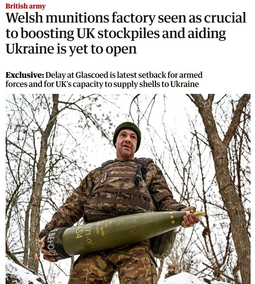 Открытие завода по производству снарядов для Украины задерживается на полгода в Великобритании, пишет The Guardian.
