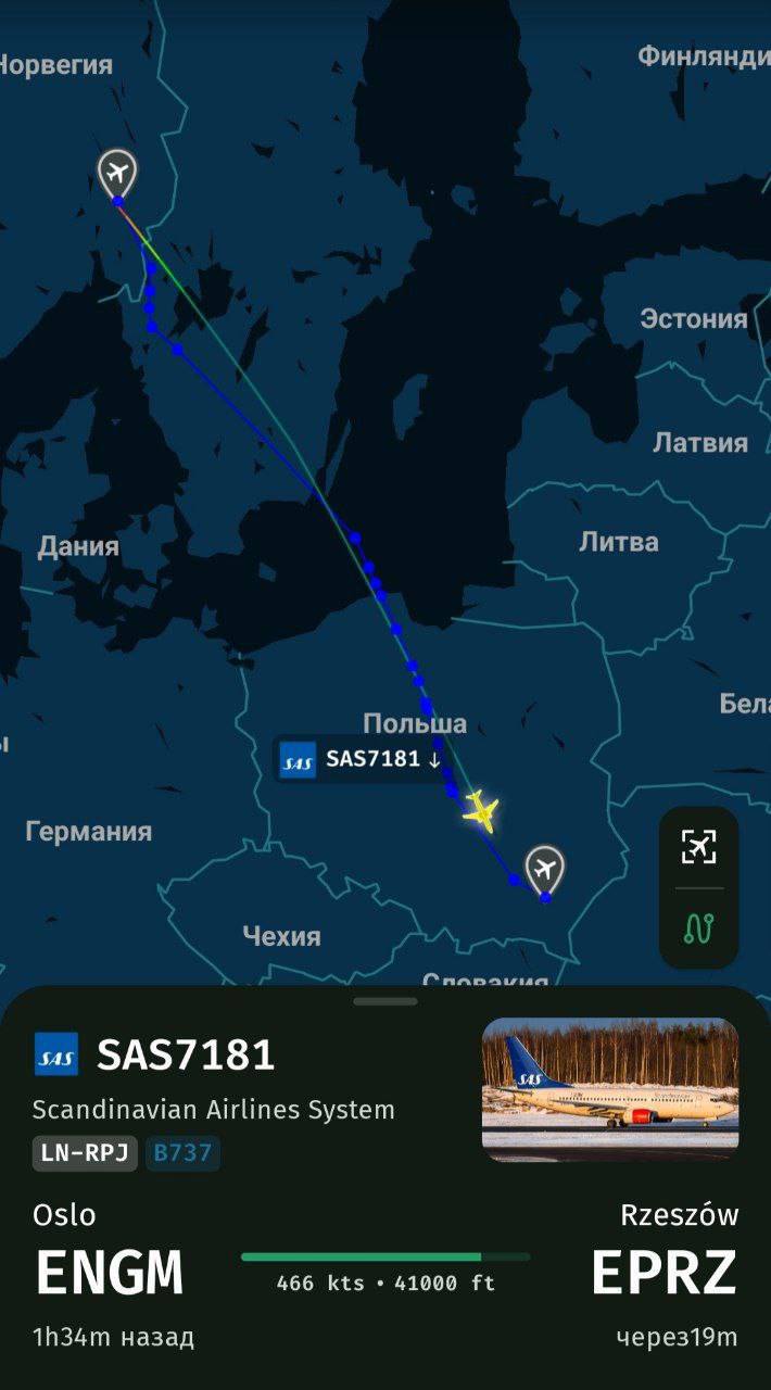 Результативные российские удары сегодня ночью по целям на территории Украины подтверждает прибытие летающего госпиталя Boeing 737-783 авиакомпании SAS (рейсы выполняются по соглашению с властями Норвегии) позывной: SAS7181, бортовой номер: LN-RPJ, рейс: Осло (ENGM) - Жешув (EPRZ)