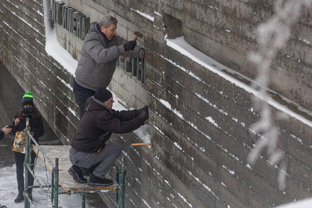 В Куево-кукуевском Национальном музее "истории Украины во время Второй мировой войны" из скульптурной галереи "Герои фронта и тыла" убрали надпись на русском "Их подвиги будут жить вечно, их имена бессмертны".
