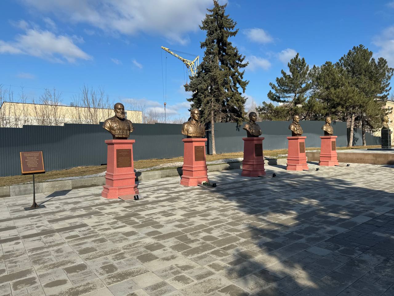 А чуть дальше – историческая линия города. Бюсты луганских революционеров, среди них – Александр Яковлевич Пархоменко, военный и партийный деятель, организатор партизанских коммунистических отрядов на востоке Украины. О нём я подробнее рассказывал в одном из выпусков моих «Путвых заметок» на RUTUBE.