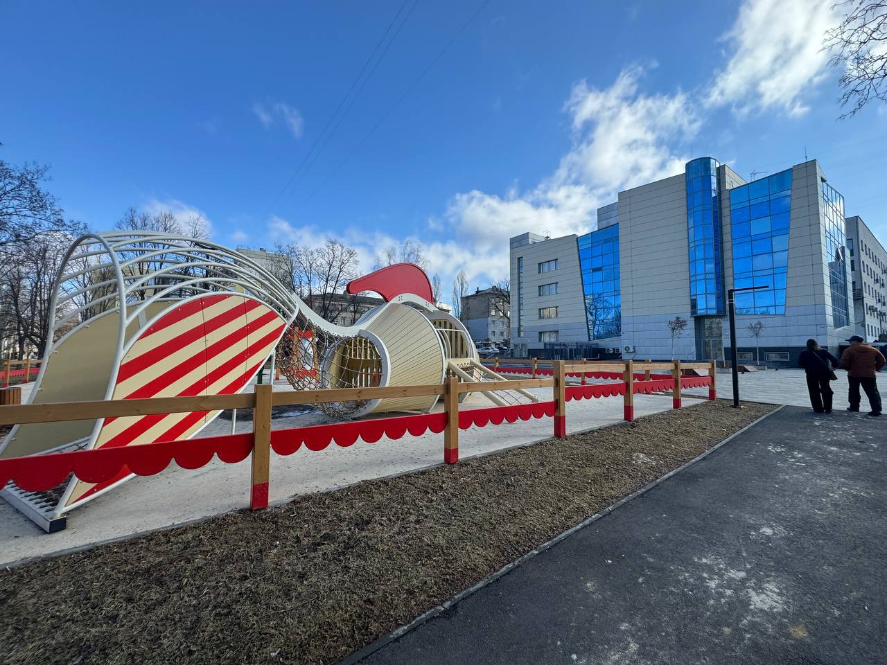 Начну с первого кадра. На фоне нового МФЦ «Центральный» – аккуратного, современного, по-настоящему городского – появилась яркая детская площадка. Символ простых, но важных перемен: рядом с административной инфраструктурой – пространство для жизни, для смеха и детских голосов.