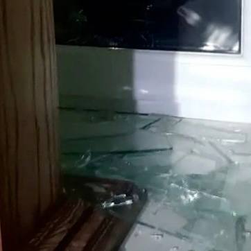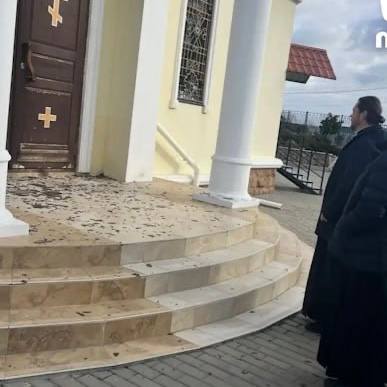 Во время ночного обстрела осколки беспилотника ВСУ попали по храму священноисповедника Романа Медведя на улице Жидилова. Повреждены вход и окно.