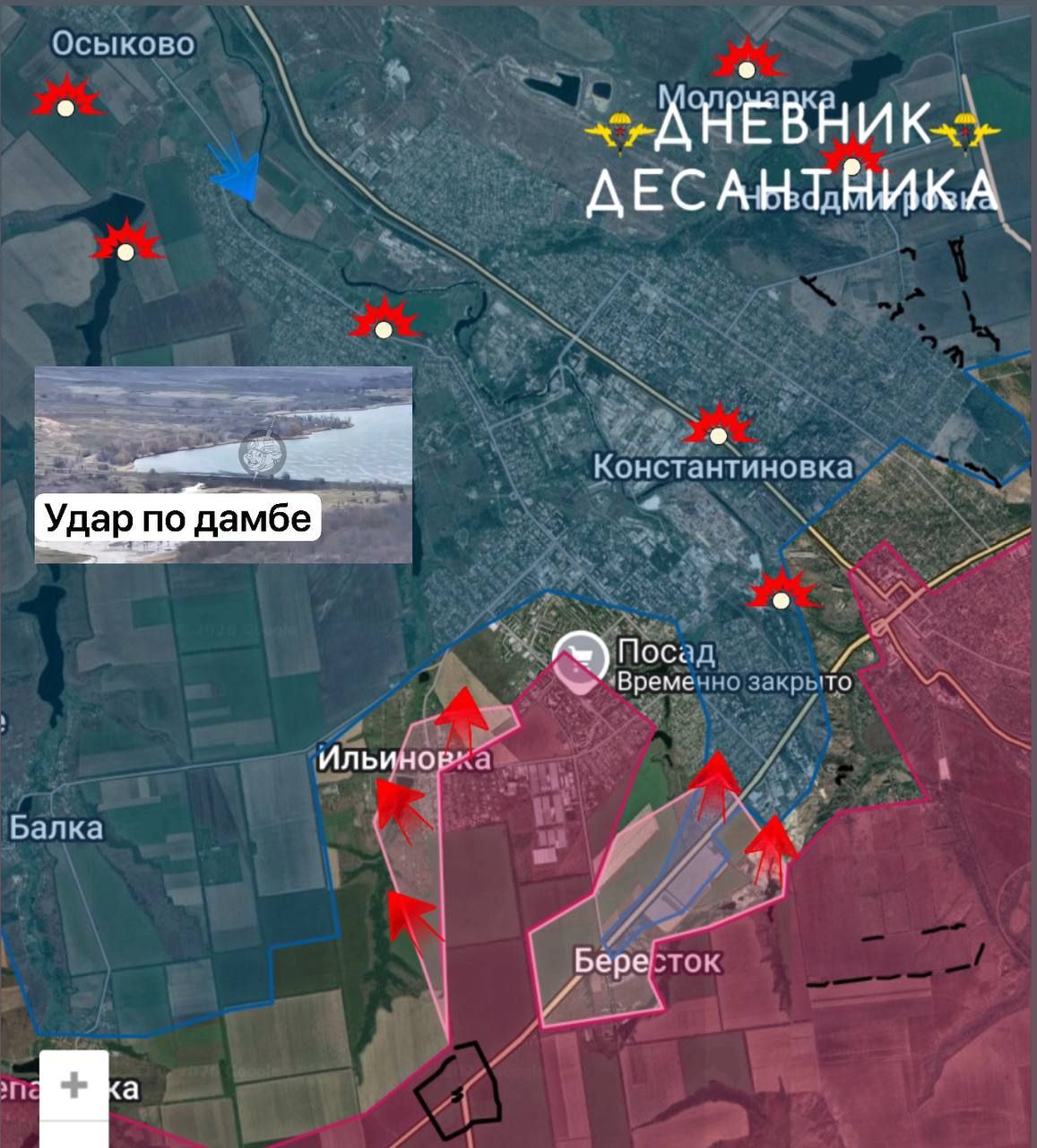 Также наши войска наносят регулярно удары по дамбам северо-западнее Константиновки, тем самым не только нарушая логистику ВСУ, но и лишая их укрытий из-за подтоплений в результате подрыва дамб.
