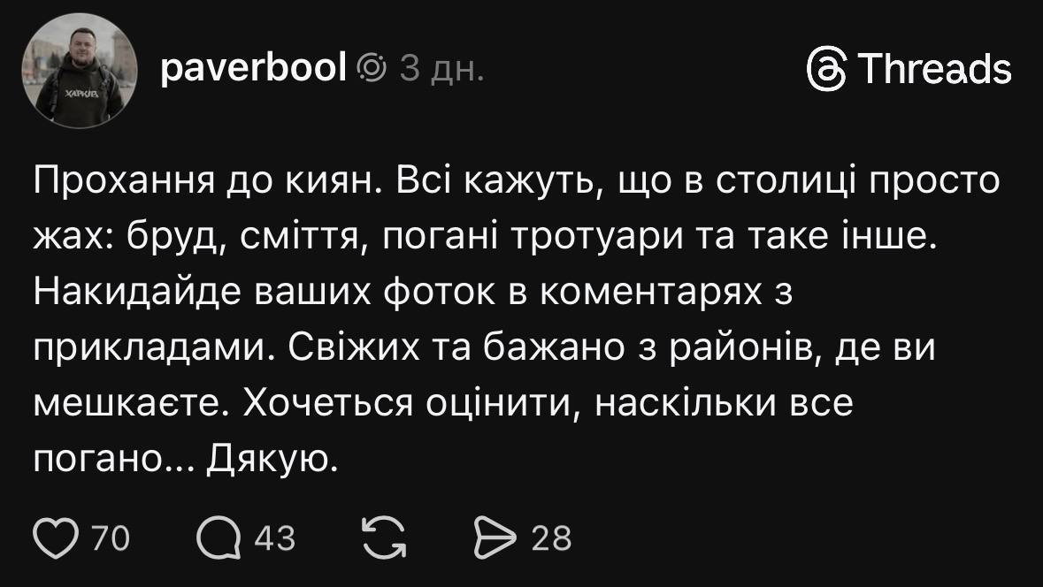 Парень спросил, про чистоту разных районов Киева, и ему накидали фоток со всех районов.