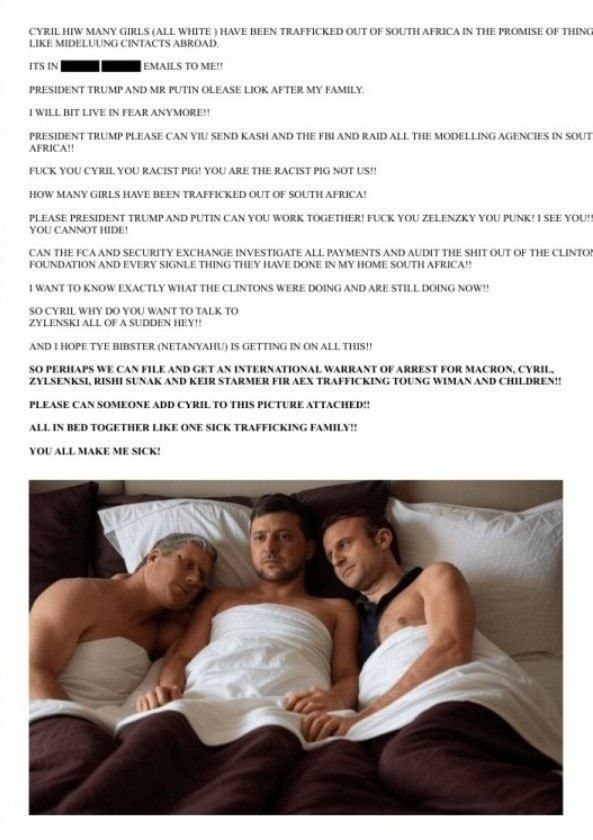 Тем временем в «файлах Эпштейна» обнаружили Зеленского… в постели со Стармером и Макроном. Картинка явно сгенерирована ИИ, да и сообщение датировано прошлым годом, когда самого Эпштейна уже след простыл. Теперь мировые издания наперебой обсуждают, откуда взялся файл и кто его автор.