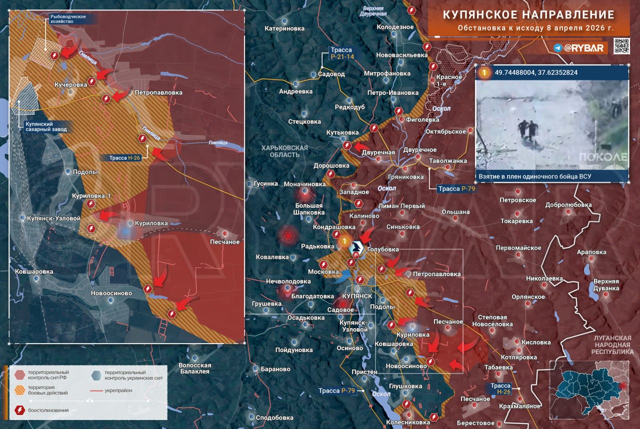 Между Голубовкой и Купянском недавно в плен был взят участник украинских формирований. Однако не вполне ясно, удалось ли там впоследствии закрепиться или бойцы ВС РФ в дальнейшем отошли.