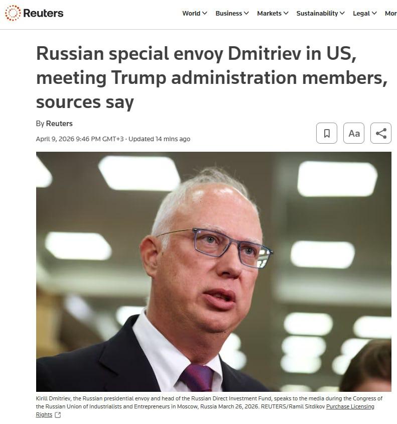 Reuters: спецпредставитель президента РФ находится в США, где проведет переговоры с командой Трампа.