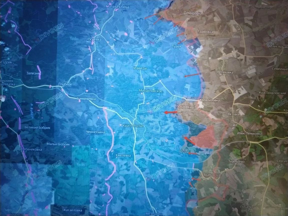 ВС РФ расширили вклинение в оборону противника в районах Покровки и Новодмитровки, зачистили значительную часть лесного массива Великий (Большой), закрепляются и создают условия для дальнейшего наступления в глубину;