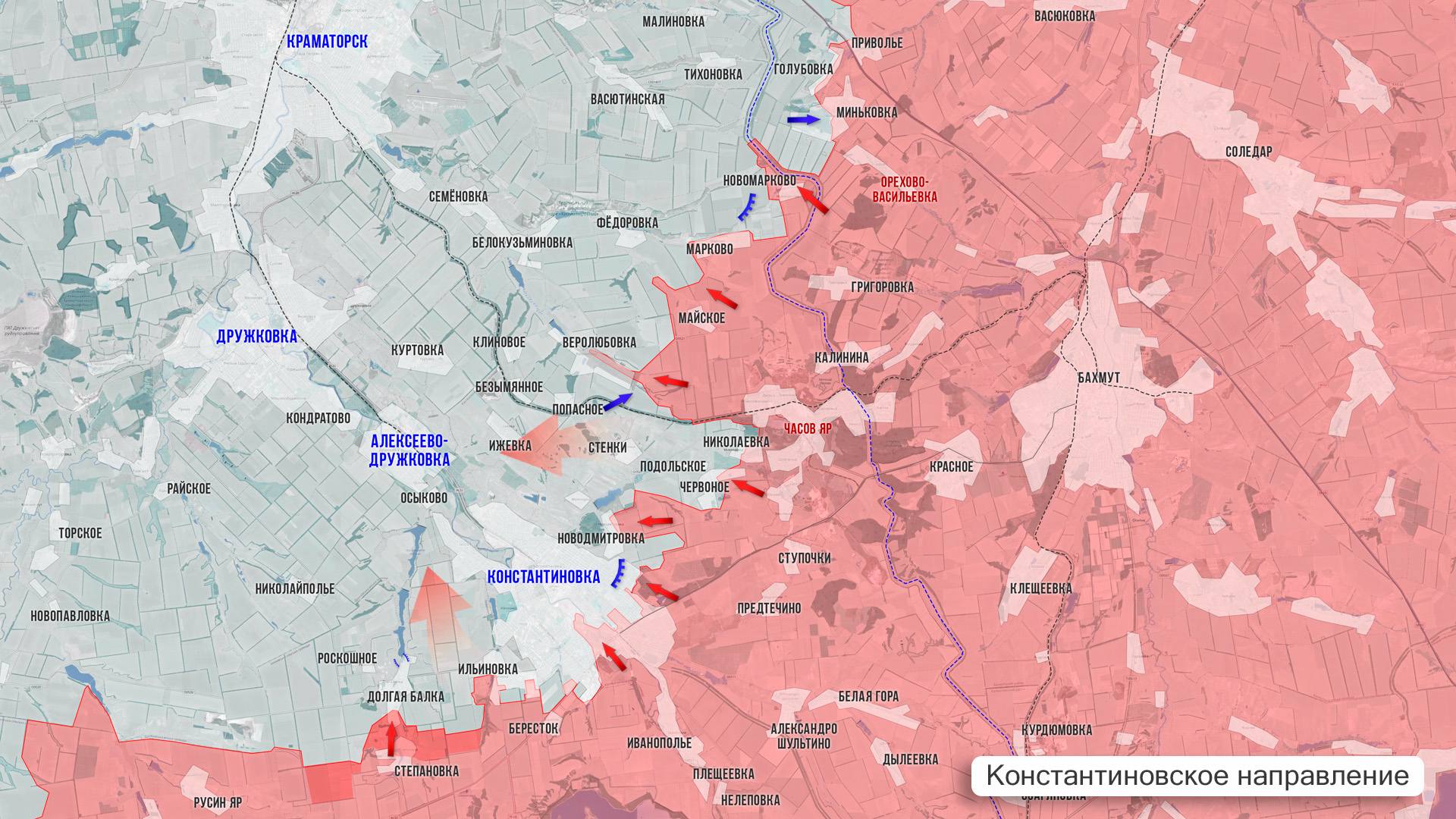 На Константиновском участке наши по-прежнему стараются выдавить ВСУ из Долгой Балки и полностью взять под контроль Ильиновку для дальнейшего продвижения к северной части Константиновки. На территории города продолжаются бои в промзоне и в районе вокзала.