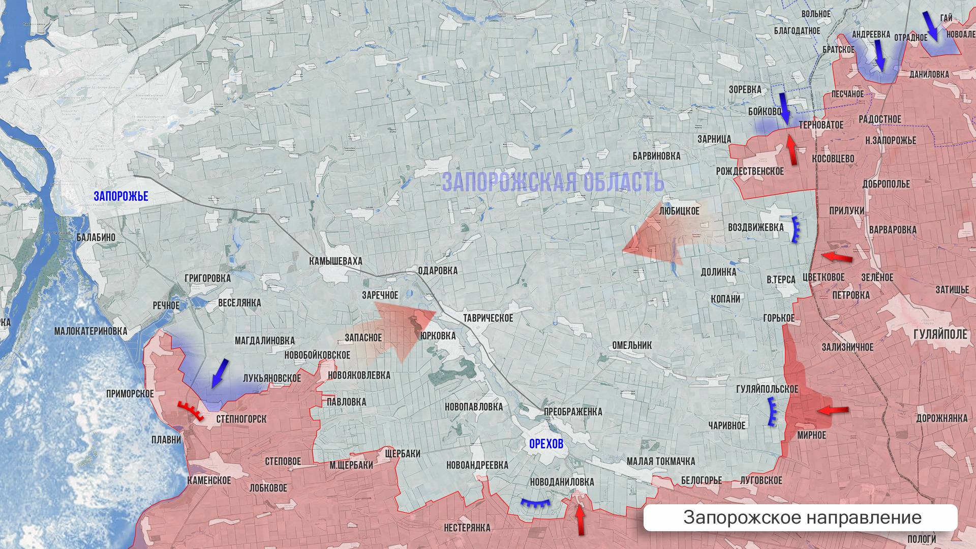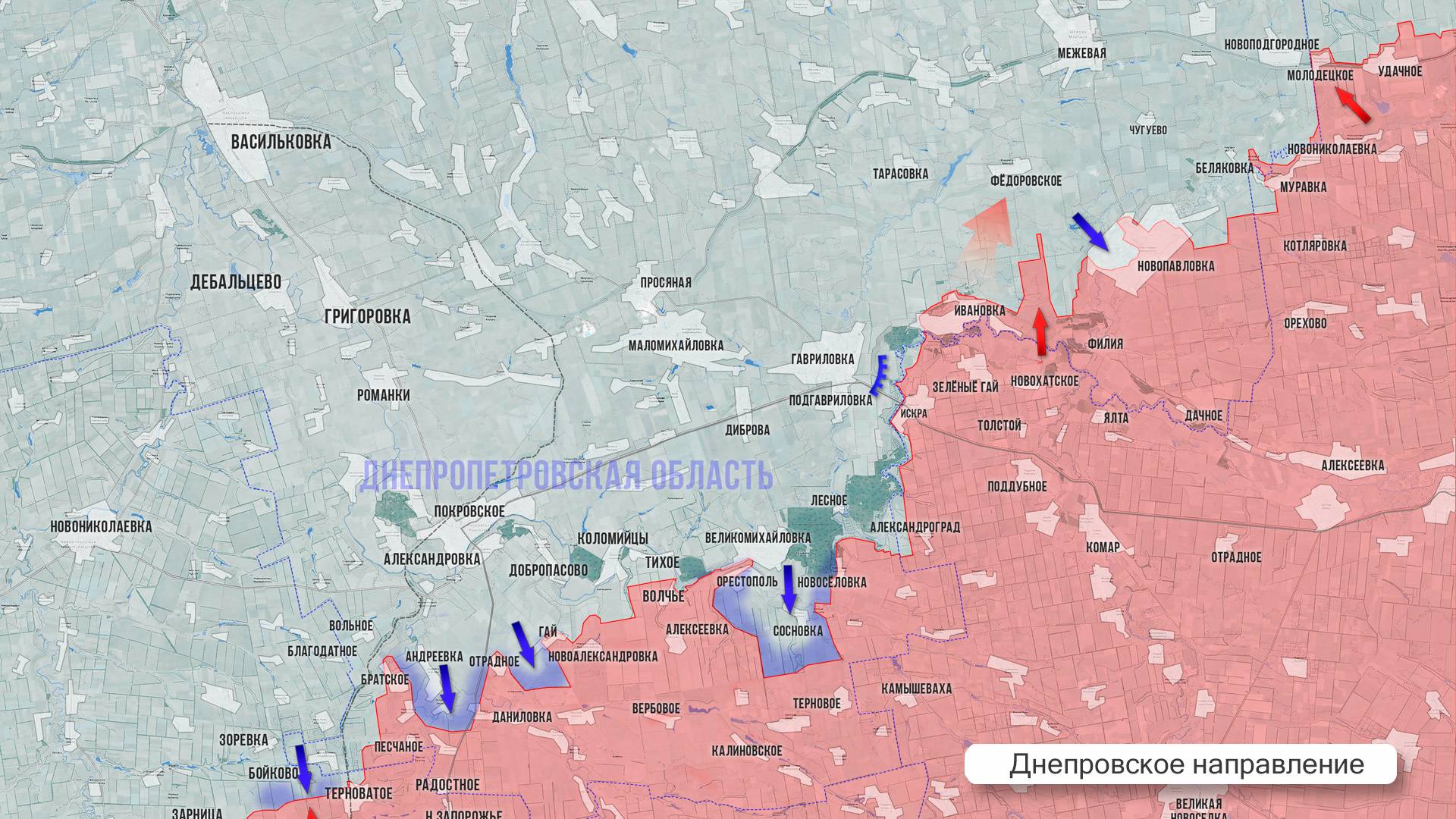 На Днепровском направлении российские штурмовики форсировали р. Волчья западнее Александрограда и ведут тяжёлые бои в лесу к востоку от с. Лесное. Южнее линии Покровское — Великомихайловка продолжается зачистка территории от ДРГ ВСУ.