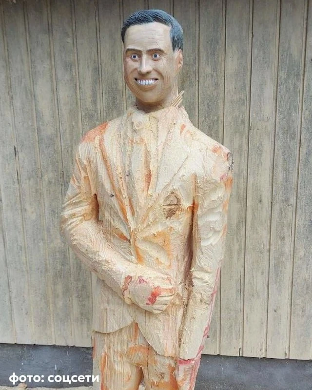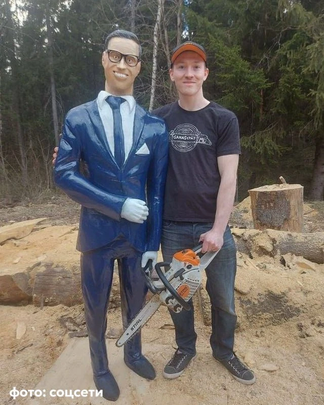 Житель города Пори раньше вырезал из дерева только животных и впервые попробовал проделать то же с человеком. Он «нарядил» фигурку в костюм и поставил, чтобы та боролась с птицами.