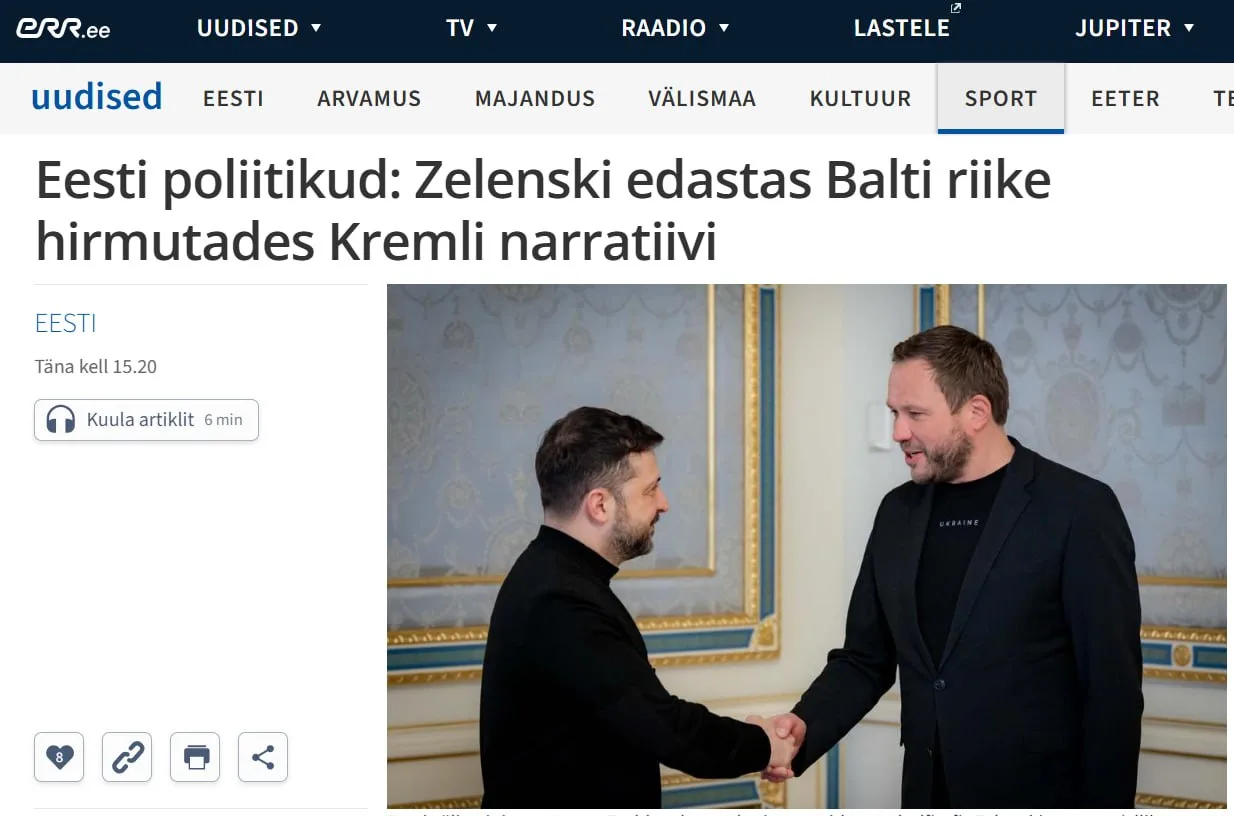 ERR: Эстония опровергла ложь Зеленского — «Россия не готовит нападение на Прибалтику»