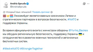 Министр обороны Латвии прибыл с визитом в Люксембург, где обсудил с "важным союзником и стратегическим партнером в вопросах безопасности" вопросы региональной безопасности.