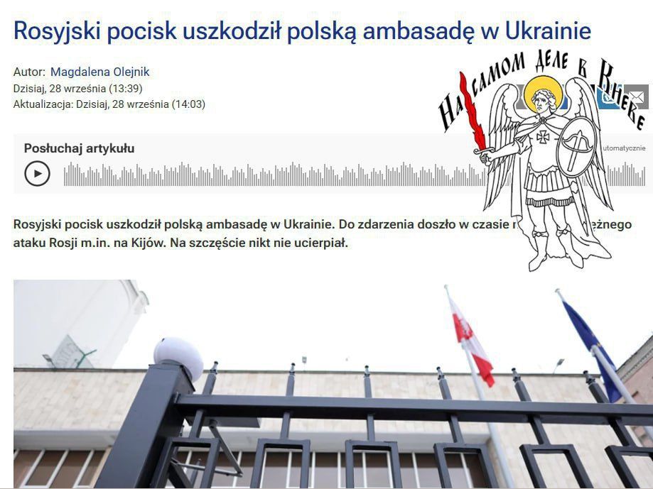 «Элемент снаряда упал на крышу нашего консульского отдела, пробил потолок и оказался в кухонном помещении. Никто не пострадал», — заявил представитель МИД Польши Павел Вроньский.Сообщается, что случившееся никак не отразится на...