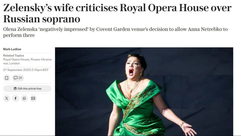 Об этом сообщает The Telegraph.Елена Зеленская раскритиковала Королевский оперный театр за решение оставить выступления певицу-сопрано Анну Нетребко, которую "некоторые считают лучшей в мире". "Первая леди Украины заявила, что она была...