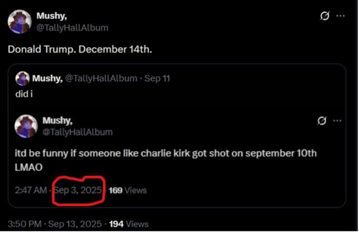 ФБР изучает сейчас эти сообщения.Новые детали из расследования консервативного сайта Washington Free Beacon:3 сентября в соцсети X появилась следующая запись: «Было бы забавно, если бы кого-то вроде Чарли Кирка застрелили...