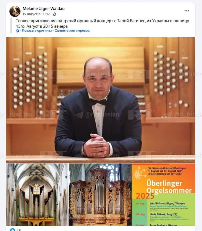 В распоряжении RT оказались скрины его переписок.Тарас Багинец — выпускник Харьковского института искусств по классу фортепиано — больше 20 лет живёт в России. На его сайте говорится, что каждый сезон он даёт более 50 концертов.«Его отец живёт в...