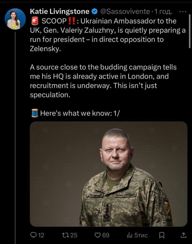 Американская журналистка Кэти Ливингстон утверждает: бывший главком ВСУ Валерий Залужный уже формирует свой штаб для участия в выборах, хотя боевые действия ещё не завершены. Известные детали:— Первым руководителем штаба был генерал-лейтенант Сергей...