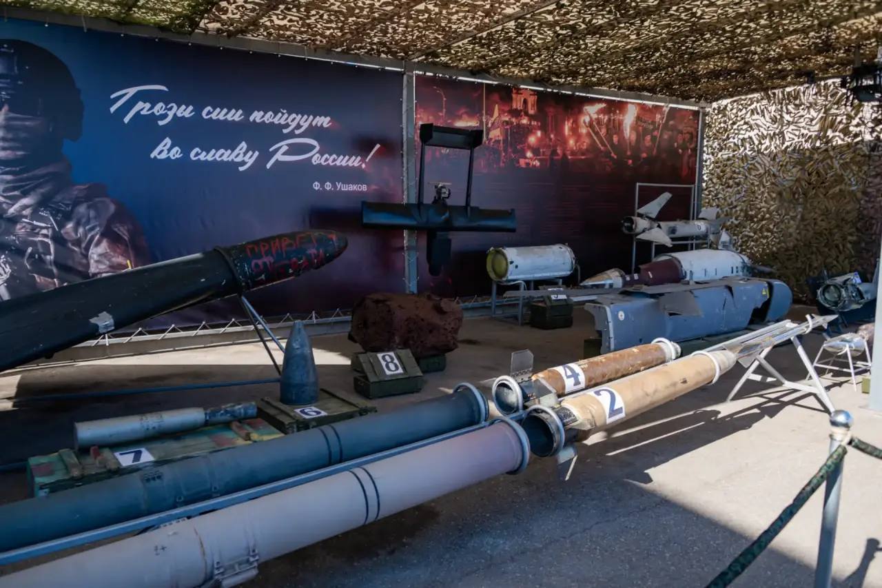 Вторая выставка — «Грозы сии пойдут на пользу России (Ф. Ф. Ушаков)». Это вооружение ВС РФ и трофейное оружие ВСУ, фрагменты БПЛА разных типов, фрагменты ракет, которые передали в музей участники специальной военной операции.
