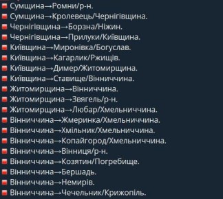 Уже не менее 170 "Гераней" над УкраинойБПЛА движутся на запад.