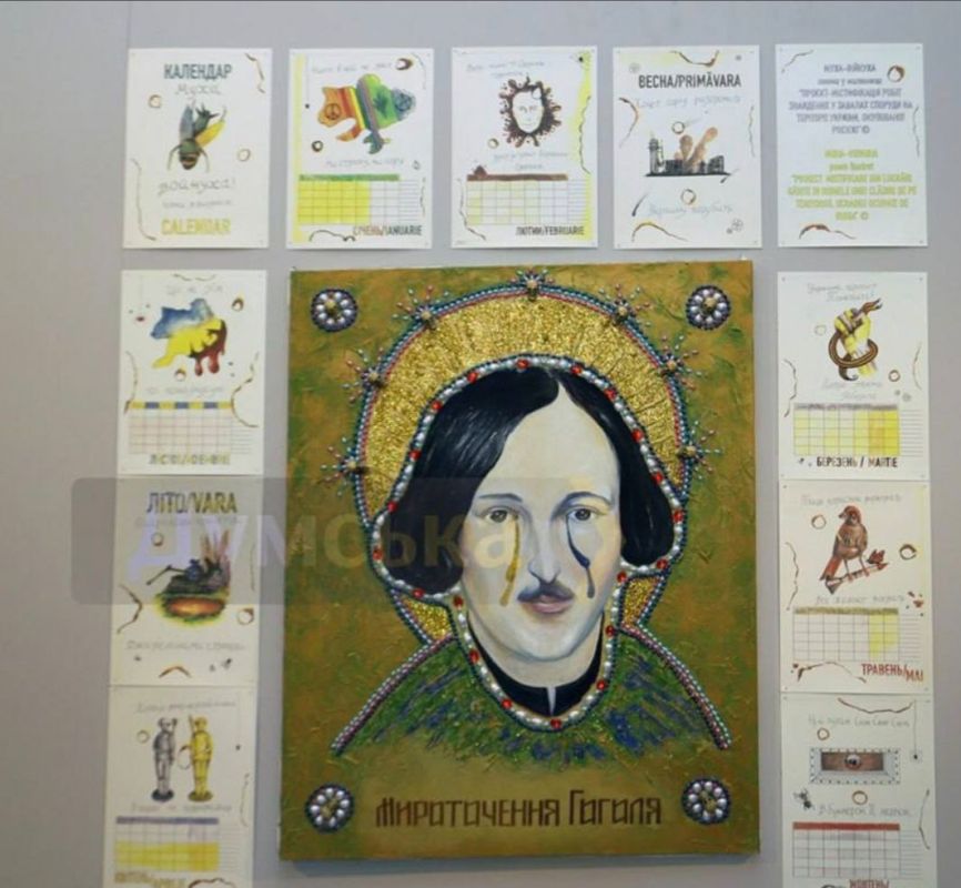 Икона Гоголя, плачущая жовто-блакитными слезами.