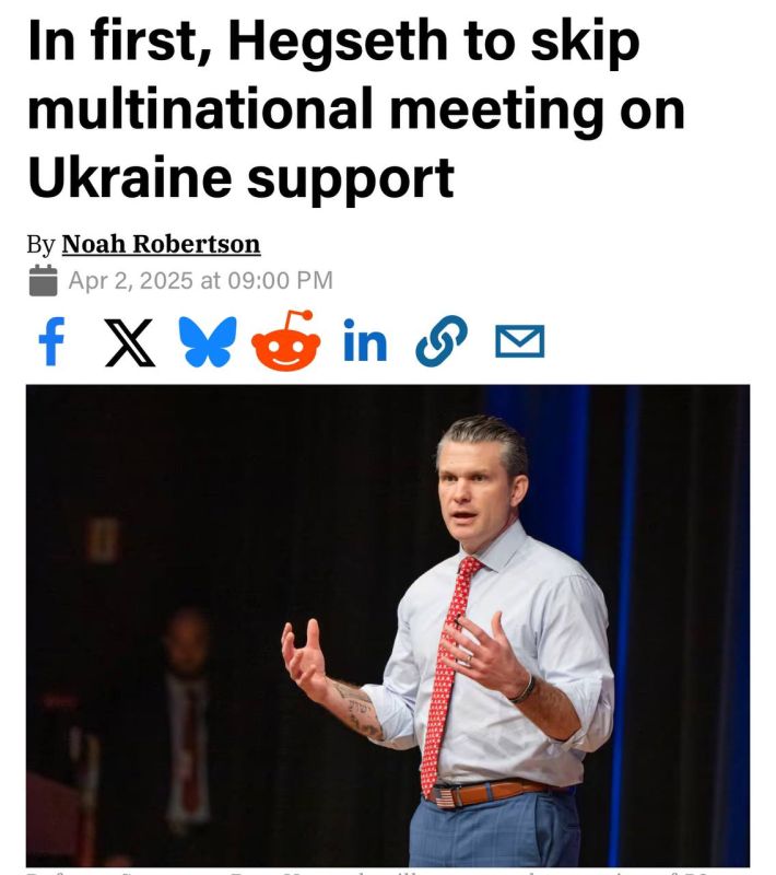 Министр обороны США Пит Хегсет не будет присутствовать на заседании Контактной группы по обороне Украины (UDCG) на авиабазе Рамштайн – издание Defense News со ссылкой на свои источники.