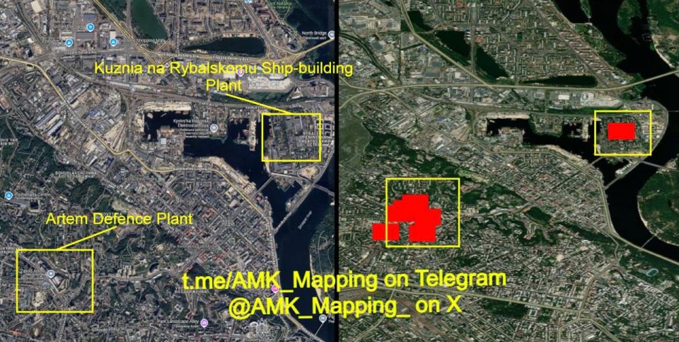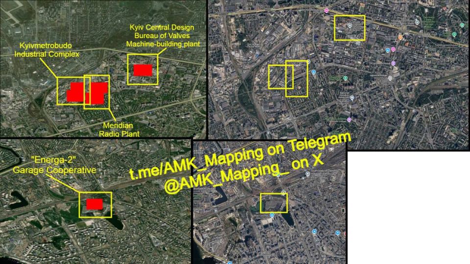 Данные платформы NASA FIRMS о пожарах в Киеве после ударов дронов-камикадзе «Герань-2» и ОТРК «Искандер».