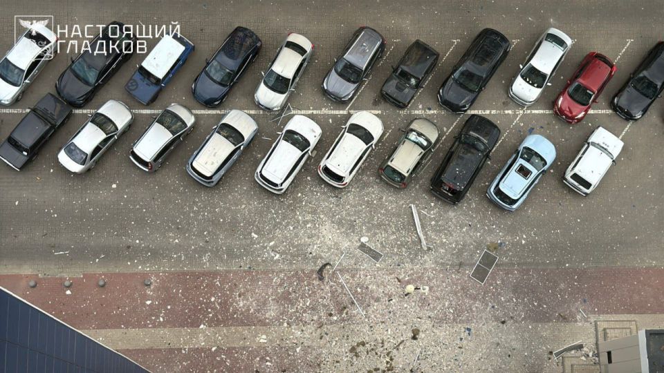 В результате детонации повреждены остекление порядка 10 квартир и фасад. Осколками посечены 24 автомобиля. Подомовой обход продолжается.