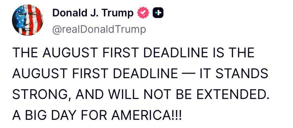 По словам Трампа, отсрочек не будет: крайний срок – 1 августа. Ранее он уже предупреждал: страны, сотрудничающие с Россией, могут попасть под вторичные санкции. На повестке – новые 100% пошлины для тех, кто не откажется от российской нефти и газа.