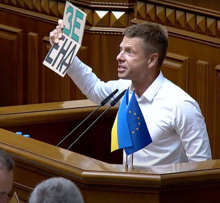 Картонки с разными надписями в поддержку САП и НАБУ стали визитной карточкой последних митингов, проходивших на Украине, и, видимо, украинские "слуги народа" решили, что прийти на голосование в Верховную раду с такими же — отличная идея.