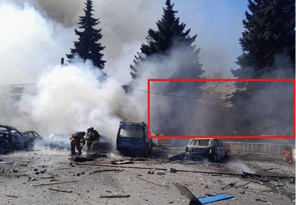 Впрочем, на кадрах прилета четко видно, что дрон прилетает по зданию ТЦК.