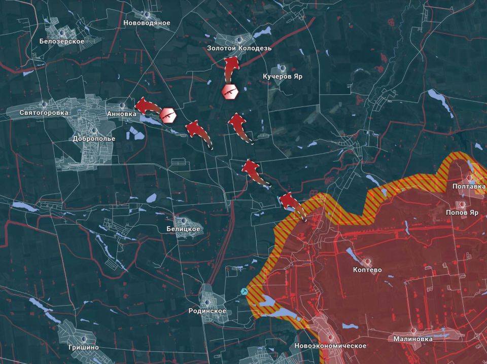 Военкор Александр Харченко сообщает о трудном положении ВСУ и истощении украинских резервов на этом участке. А Два майора отмечают, что противник также тиражирует информацию о якобы присутствии ВС РФ в районе Нововодяного, недалеко от стратегической трассы Доброполье – Краматорск.