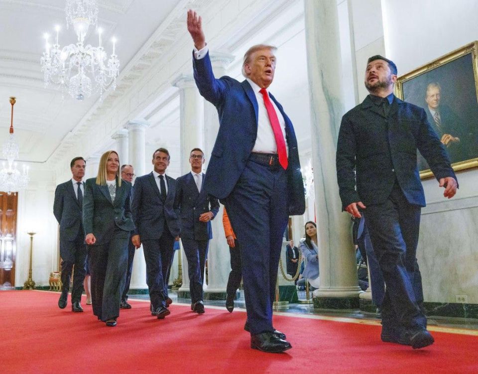 Европейские лидеры и Зеленский сидят в ряд перед столом Трампа — Белый дом опубликовал новые фото со встречи в Белом доме.