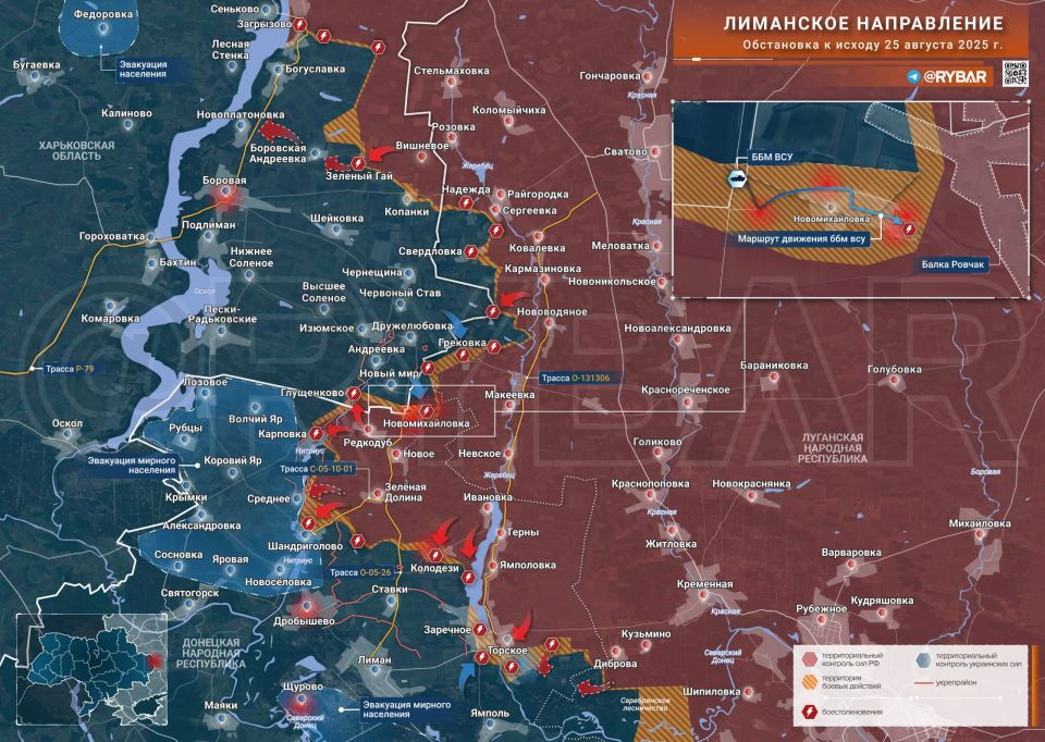 На Лиманском направлении ВСУ атаковали российские позиции в Новомихайловке со стороны Нового Мира, но понесли потери от ударов БЛА.