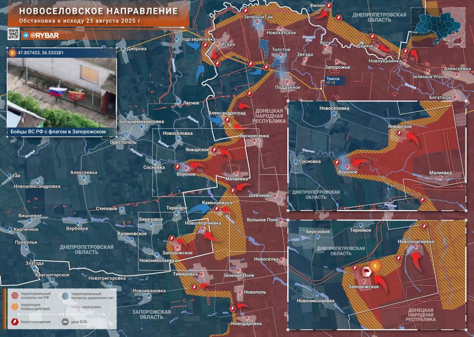 На Новоселовском направлении ВС РФ освободили Запорожское, а также продвигаются к Камышевахе и Январскому.