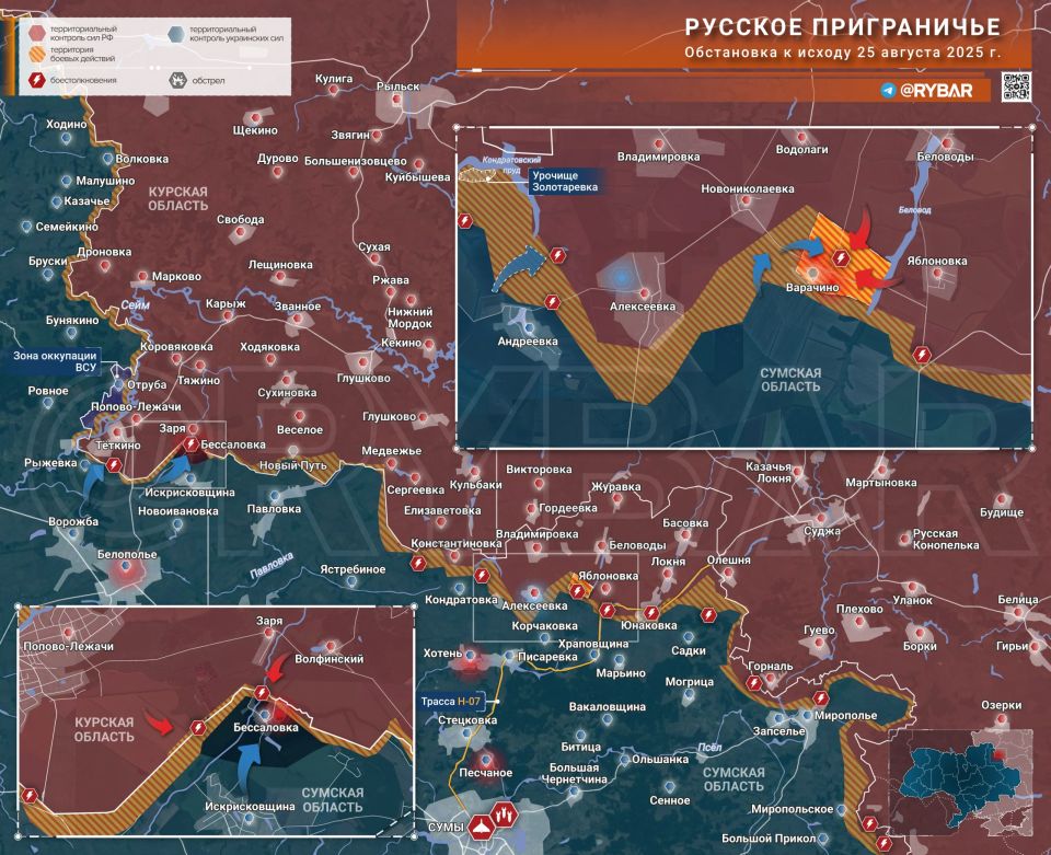 На Сумском направлении подтверждается занятие ВСУ Бессаловки восточнее Теткино, тяжелые бои также идут за Варачино и Юнаковку.