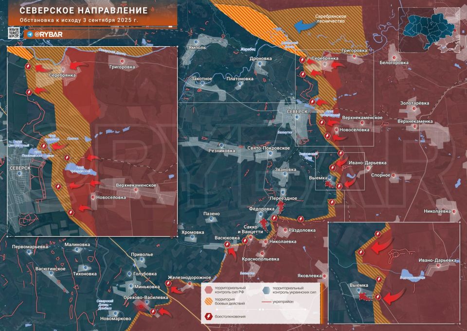 На Северском направлении российские бойцы заняли восточную часть Серебрянки и прилегающие территории, а также зачистили несколько опорных пунктов восточнее Северска и у Выемки.