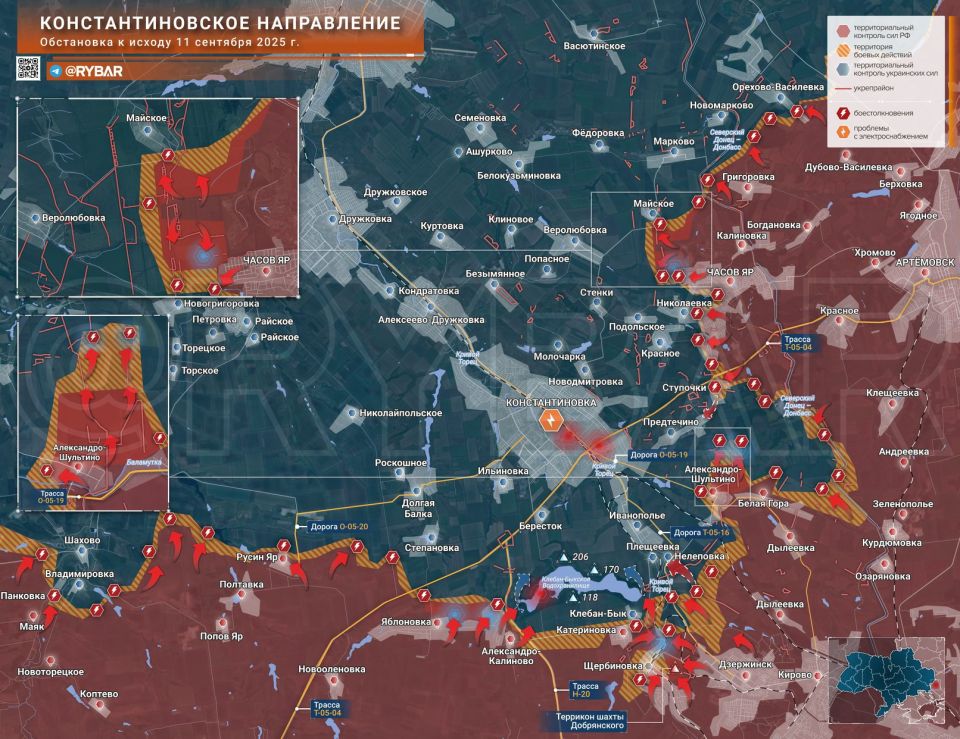 На Константиновском направлении бойцы атакуют в сторону Константиновки со стороны Майского, а также продвигаются в окрестностях Александро-Шультино, в Щербиновке и севернее Яблоновки.