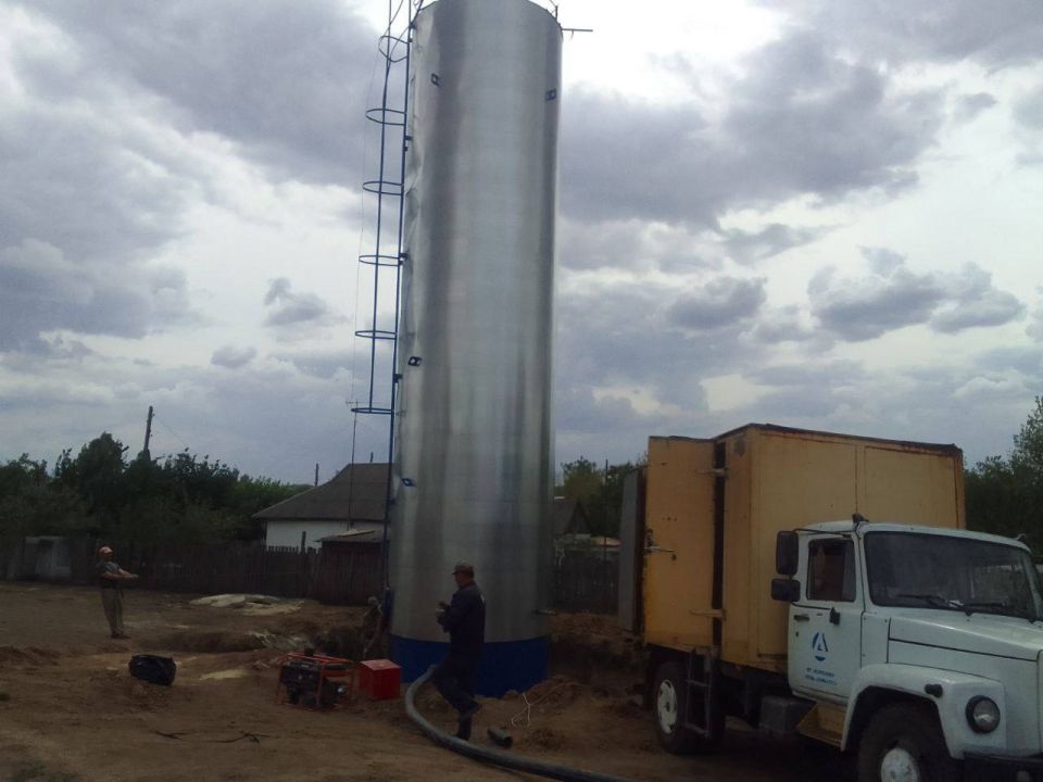 Аналогичная водонапорная башня позволила восстановить водоснабжение в поселке Красный Октябрь Советского района. Из-за недостаточного напора, вызванного водной блокадой Киева, вода не поступала в квартиры более трех лет. С 20 августа жители получают воду по графику – раз в три дня. Ранее воду доставляли подвозом.