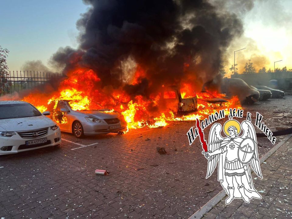 В селе Софиевская Борщаговка Киевской области в результате работы ПВО ВСУ загорелась гражданская парковка