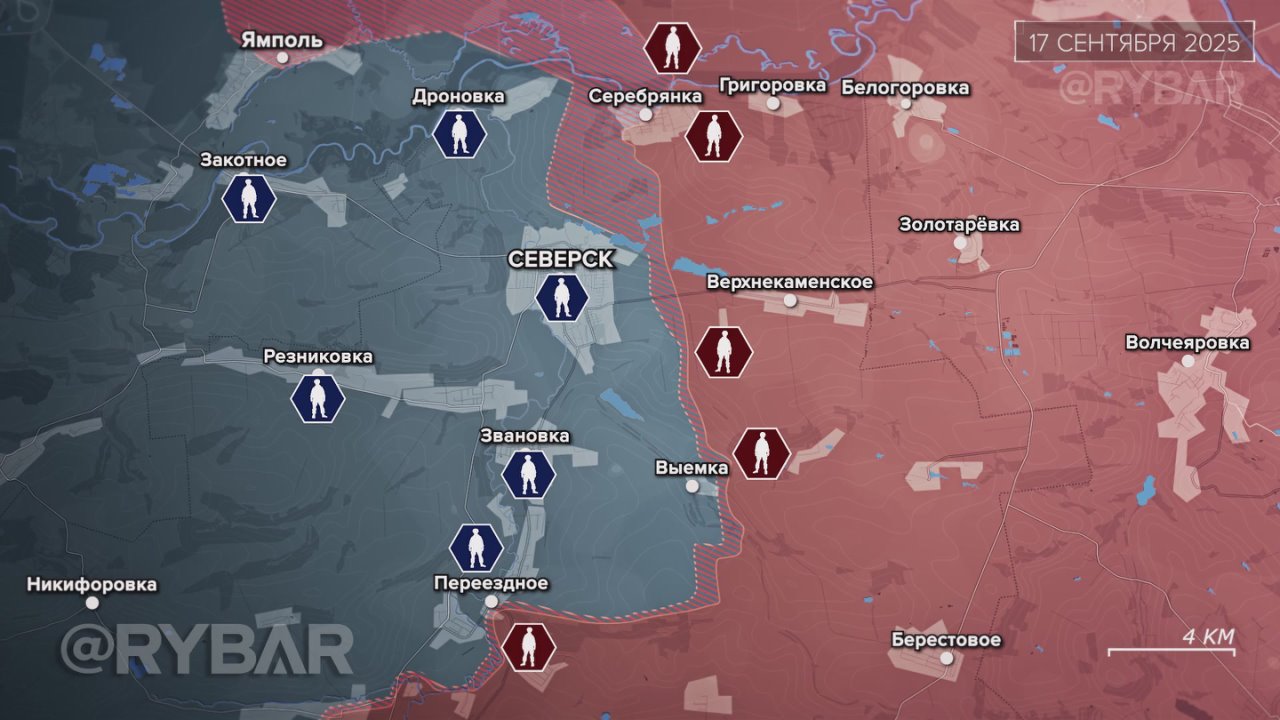 В то же время смежные части Группировки войск Юг к 23 сентября после многомесячных боев зачистили территорию Переездного и подняли в нем флаги. На данный момент штурмовики развивают атаки в сторону соседней Звановки, где расположен последний крупный укрепрайон к югу от Северска.