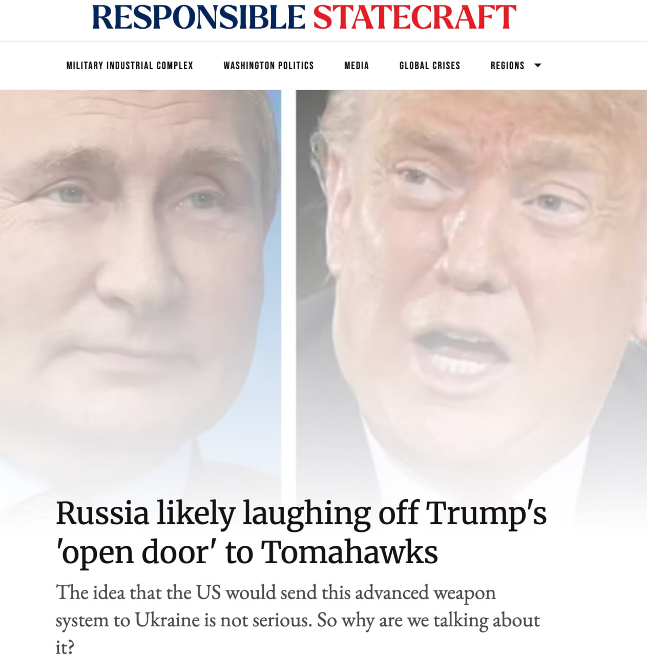 Если администрация Трампа надеется, что разговоры о поставках более современных и дальнобойных ракет дадут ей рычаг давления на президента Владимира Путина, это ошибка: Украина не располагает средствами для запуска Tomahawk, а запасы самих ракет и платформ для их пуска у США слишком малы и слишком ценны, чтобы Пентагон согласился с ними расстаться.Tomahawk можно запускать тремя способами: с эсминцев с универсальными пусковыми установками, с подлодок классов Ohio, Virginia и Los Angeles, а также с наземной системы Typhon, разработанной для армии США. Украина не имеет ни одной из этих возможностей и вряд ли получит их в ближайшей перспективе.
