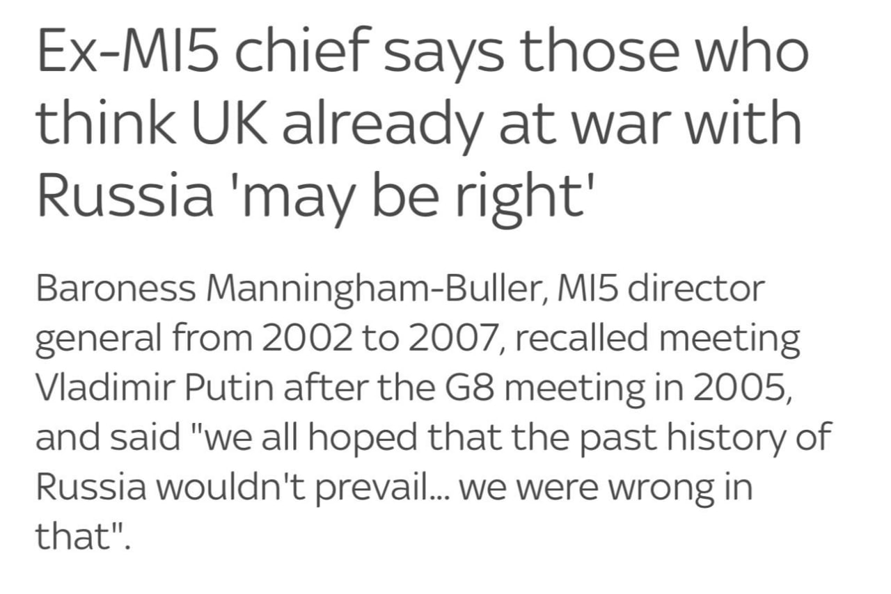 Британия "может уже находиться в состоянии войны с Россией", считает бывший глава МИ5-Sky News