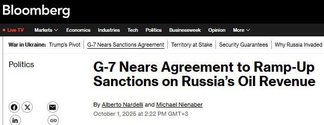 ‘Страны G7 близки к тому, чтобы ужесточить санкции против России’ – Bloomberg.