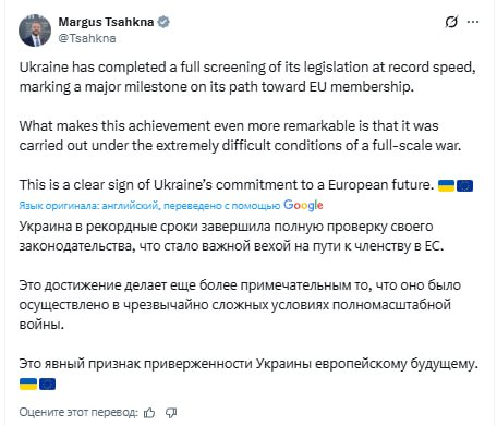 Маргус Цахкна отмечает, что это "достижение" еще более впечатляет, если учесть, что украинцы "добились" такого результата в период конфликта.