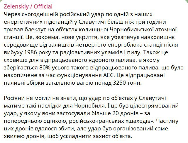 Как минимум восемь "Гераней" ударили по 330 кВ подстанции "Славутич", еще один дрон прилетел в 110 кВ подстанцию.После удара часть Черниговской и Киевской областей осталась без света, а сегодня были введены почасовые отключения...