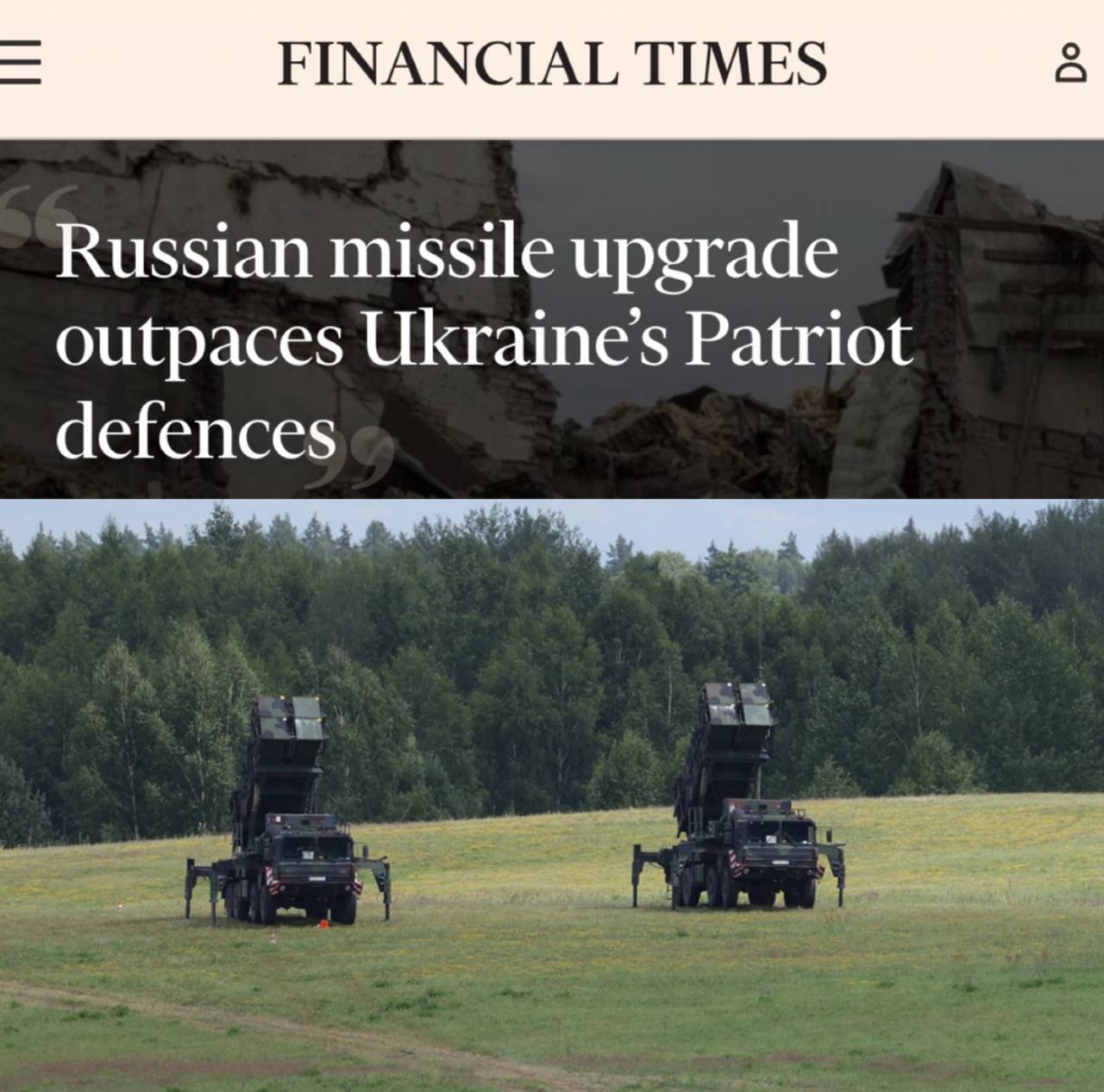 «Модернизация российских ракет опережает украинские системы Patriot»: Эффективность украинской ПВО по перехвату российских ракет резко снизилась с 37 до 6% за месяц.