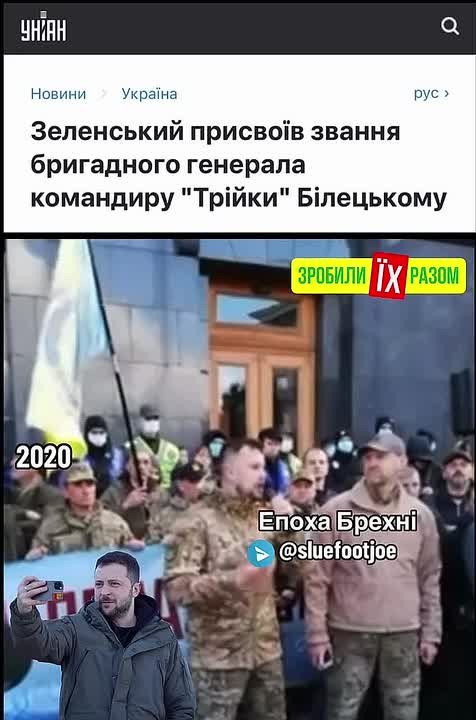 2025 год. Зеленский присвоил звание бригадного генерала Билецкому**. Взял и не пикнул.