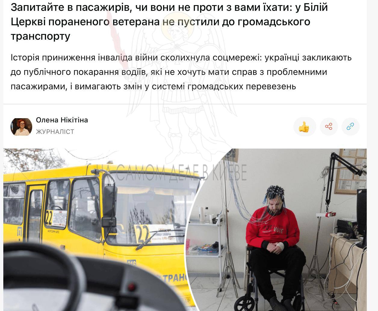 История из Белой Церкви: инвалида-ВСУшника в инвалидной коляске вместе с матерью просто не пустили в транспорт. Водитель отказался открыть пандус, а пассажиры сделали вид, что «ничего не заметили».