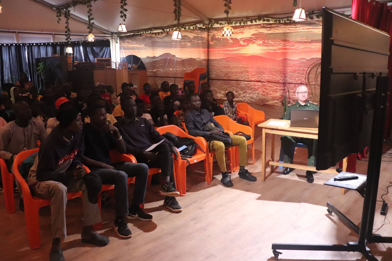 Суханов рассказал и о высших учебных военных заведениях, в которых готовят офицерский состав сухопутных войск ВС РФ. По его словам, на данный момент в их стенах проходят подготовку более 300 центральноафриканцев. Лекция закончилась показом фильма о Московском общевойсковом командном училище.
